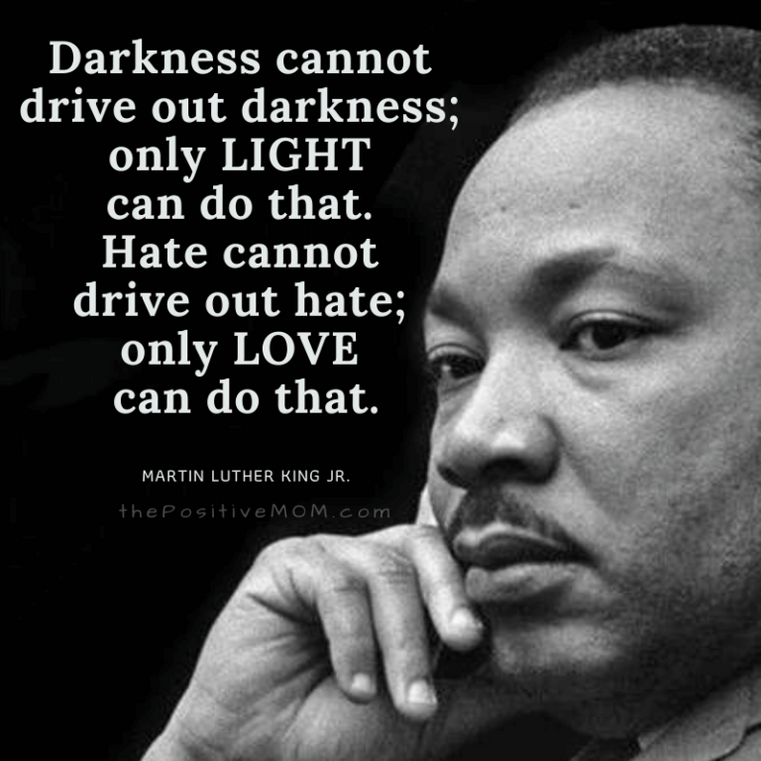 I have decided to stick with love. Hate is too great a burden to bear.